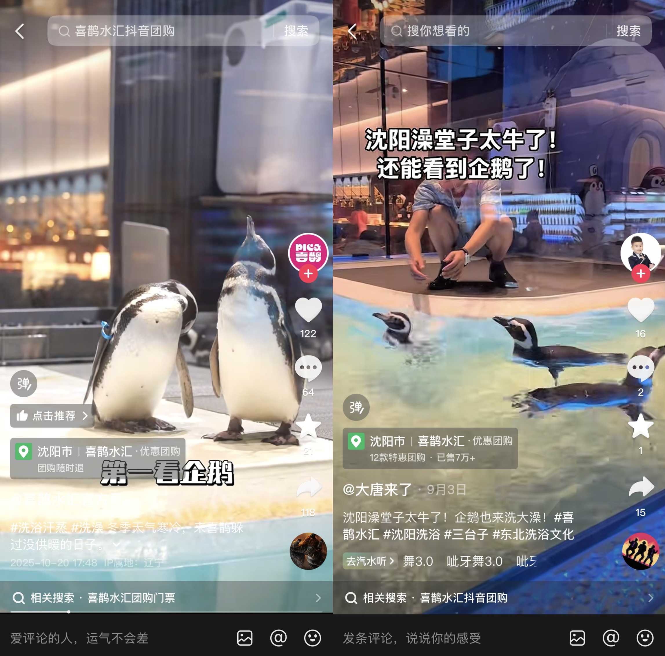 为此喜鹊水汇通过抖音直播间与短视频,有节奏地释放真实的限时优惠活动信息。当用户被喜鹊水汇可爱的企鹅和高品质洗浴环境所吸引时,一个限时优惠的团购套餐链接,恰好就提供了那个关键的“行动理由”。这种“内容激发兴趣+优惠提供动力”的组合,有效缩短了用户的决策链路,创造了消费的紧迫感,也在一定程度上缓解了线上用户容易流失的问题。